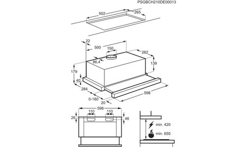 | Afzuigkracht (laagste stand) | 150 m³/h |