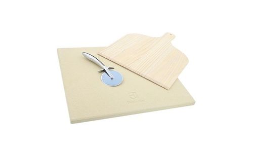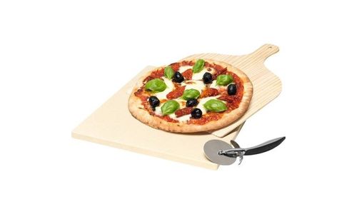 Pizzasteenset (1 steen, 1 houten schep, 1 rolmes) 38x33x1,5cm