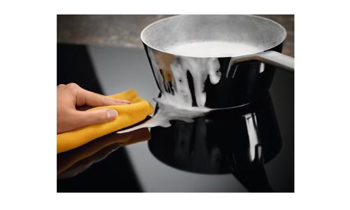 Inductietechnologie betekent dat de warmte snel wordt geleverd en precies op de juiste plek, waardoor de omliggende zones koel en veilig blijven. Deze reageert ook direct op temperatuurveranderingen. Het gladde oppervlak is bovendien gemakkelijk te reinigen.