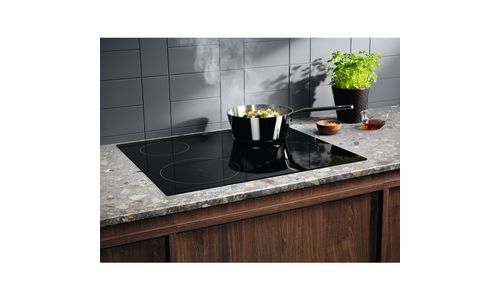 Inductietechnologie betekent dat de warmte snel wordt geleverd en precies op de juiste plek, waardoor de omliggende zones koel en veilig blijven. Deze reageert ook direct op temperatuurveranderingen. Het gladde oppervlak is bovendien gemakkelijk te reinigen.
