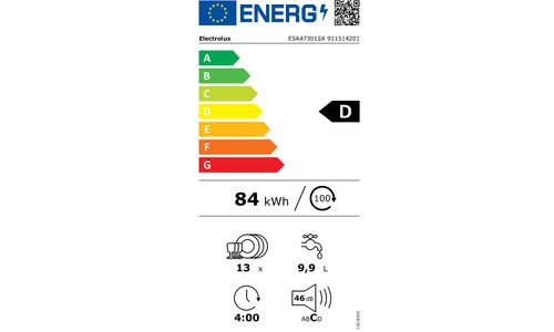 | Energieverbruik in eco-programma per 100 cycli | 84 kWh |