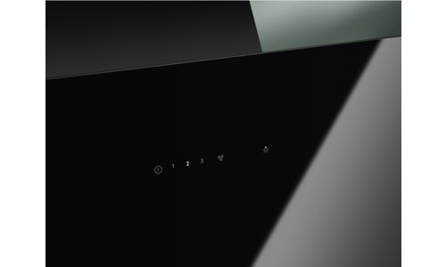 Een elegant glazen paneel combineert de instellingen van de afzuigkap voor een snelle en effectieve ventilatie in de keuken. Absolute nauwkeurigheid met één druk op de knop.