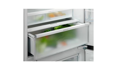 De 700 GreenZone-koel-vriescombinatie heeft een verzegelde lade waar de luchtvochtigheid op een stabiel niveau blijft door beheer van overtollige vochtigheid, wat voedingsmiddelen beschermt. Tot 95% van de vitamines blijft behouden doordat de juiste luchtvochtigheid de verse producten beschermt.*