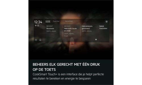CookSmart Touch+ is een interface die je kookervaring verbetert, je naar perfecte resultaten leidt en tegelijkertijd energie helpt besparen. Jouw favoriete gerechten en bereidingswijzen kunnen in de app worden opgeslagen en met één druk op de knop naar de oven worden gestuurd.