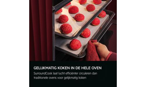Het slimme hetelucht convectiesysteem zorgt dat de warme lucht gelijkmatig in de ovenruimte circuleert, voor een sneller en energiezuiniger bereidingsproces.