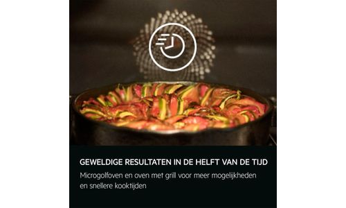 De combinatie van microgolven en oven combineert de cirkulatie van hetelucht met geavanceerde microgolftechnologie voor grillen, braden en bakken tot 50% sneller dan in een klassieke oven.