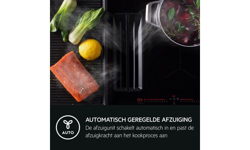 Automatische regeling van de afzuiging zorgt ervoor dat je je kunt richten op wat belangrijk is – koken. De kookplaat schakelt de afzuiging automatisch in en past het niveau aan op basis van je kookactiviteiten, zodat je keuken fris blijft en je handen vrij zijn.