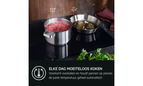 De slimme sensoren SenseBoil & Fry zijn de perfecte assistent in de keuken De kookplaat stelt zichzelf automatisch in op de juiste temperatuur om overkoken te voorkomen. Dus een eitje koken of een stoofschotel maken is geen enkele moeite meer.
