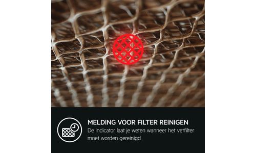 De afzuigkap heeft een handig meldingssysteem voor het reinigen van het filter. Een indicatielampje op de afzuigkap laat je weten wanneer het vetfilter en koolstoffilter moeten worden gereinigd – je hoeft het niet zelf bij te houden.