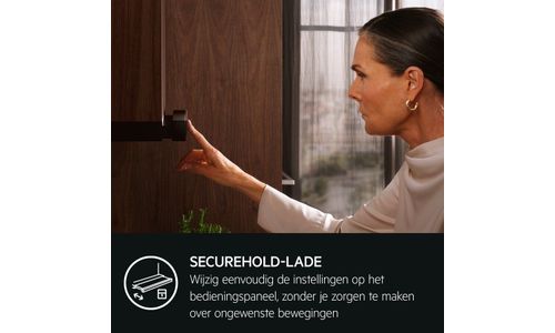 De SecureHold-lade trek je gemakkelijk uit en vergrendelt wanneer in positie. Op het bedieningspaneel verander je eenvoudig de afzuigkapinstellingen, zonder dat je je zorgen hoeft te maken over ongewenste bewegingen van je uittrekbare afzuigkap.