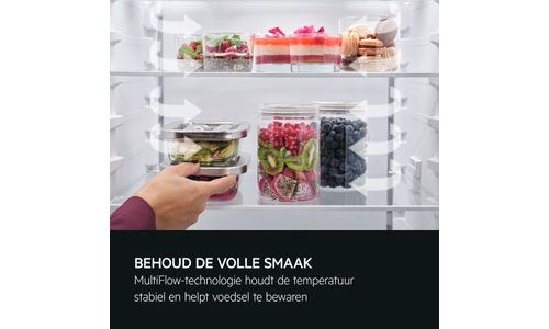MultiFlow beschermt de kwaliteit van het voedsel door een stabiele temperatuur en vochtigheidsgraad in de hele koelkast te handhaven. Meerdere luchtkanalen maken een actieve circulatie van koude lucht mogelijk die elke hoek bereikt.