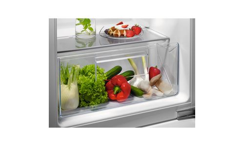 De OptiSpace koelkast biedt veel opbergmogelijkheden, met een overvloed aan ruimte tussen de schappen. De laden kunnen allemaal gemakkelijk losgemaakt en weer vastgemaakt worden, voor moeiteloos en handig opbergen.