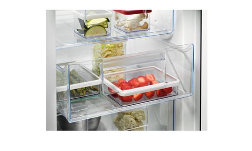 Deze innovatieve vriezer met OptiSpace biedt veel opbergmogelijkheden en veel ruimte tussen de schappen. De diepvriesboxen kunnen allemaal gemakkelijk worden losgemaakt en weer bevestigd, voor moeiteloos en handig opbergen.