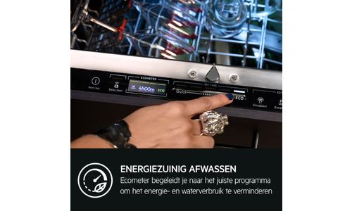 Verantwoorde keuzes worden makkelijk gemaakt. Gebruik de QuickSelect-schuifregelaar op het aanraakscherm om je gewenste cyclustijd te selecteren en de Ecometer toont je via groene aanduidingen het meest duurzame programma om energie en water te besparen.